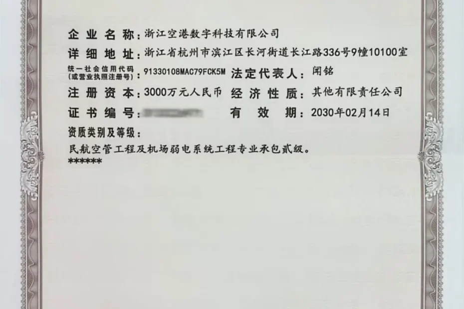 2025年2月浙江空港数字科技有限公司获民航弱电工程专业承包贰级资质。